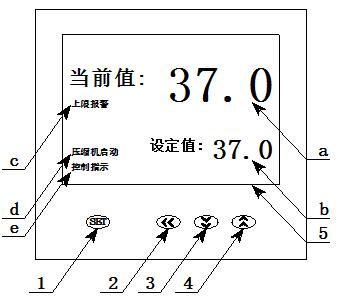 3)再按SET鍵當(dāng)前值會(huì)顯示箱內(nèi)溫度,設(shè)定值顯示所設(shè)定的值。此時(shí)溫度已設(shè)定好可以使用。