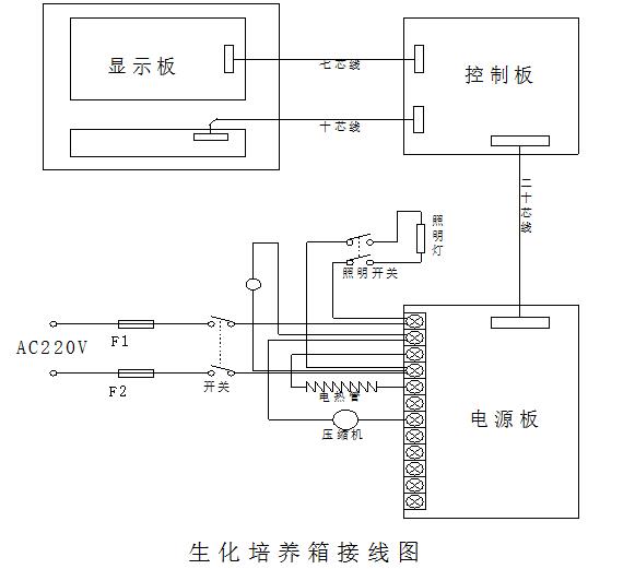電源開(kāi)關(guān)按到“通”處,生化培養(yǎng)箱進(jìn)入工作狀態(tài),液晶屏顯示出各種提示符及參數(shù)。