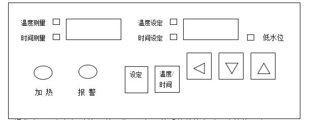 (3)接通電源:將三芯電源插頭插入電源插座,將電源開關處在“ON” 的位置,此時電源指示燈亮、溫度控制器出現數字顯示,表示設備進入工作狀態。**次使用本機,低水位指示燈亮且報警。