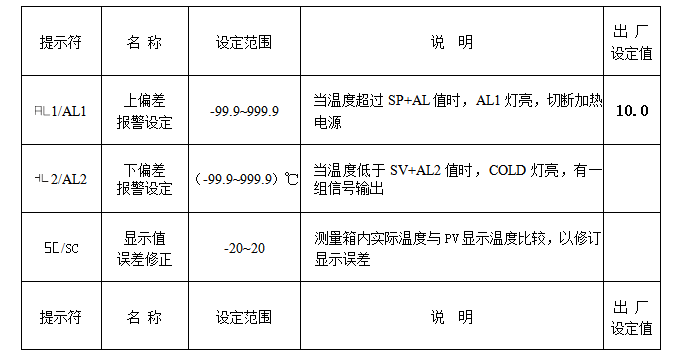 b) 開機,當設備運行**恒溫狀態(1~2小時左右),比較實際溫度與測量值顯示溫度的差值,其差(實際溫度-測量值顯示值)即是測量值修正參數SC需要修改的值,即: