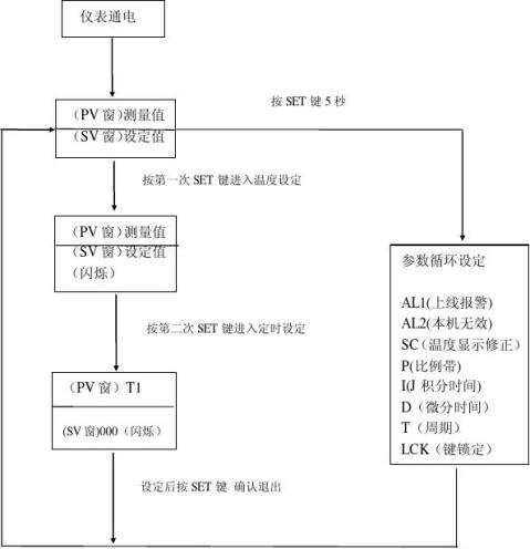 注:參數設定后,應按功能鍵“SET”約五秒確認,否則30秒后程序自動退出,參數設定無效。