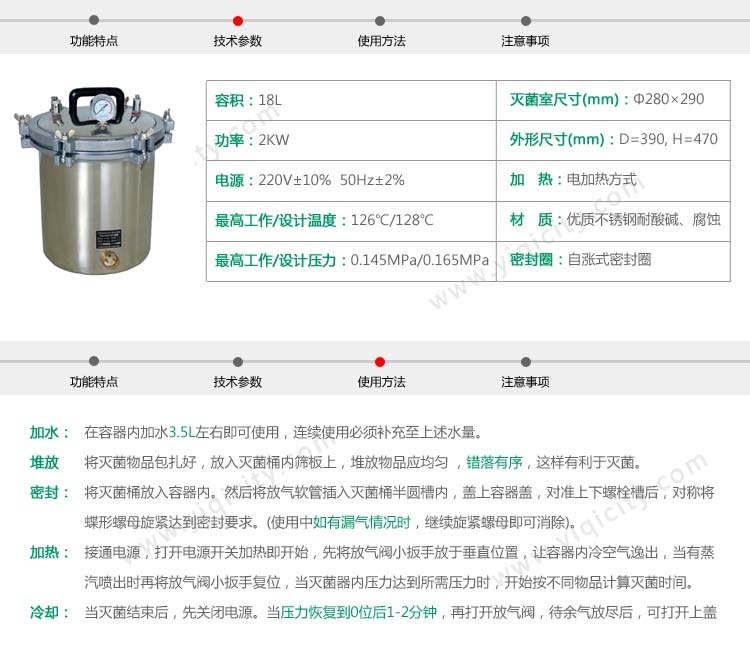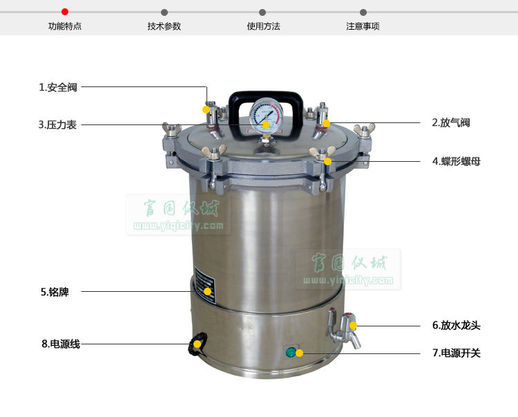 品名:電加熱手提式滅菌器(蝶型螺母開(kāi)蓋型)型號(hào):YXQ-SG46-280S